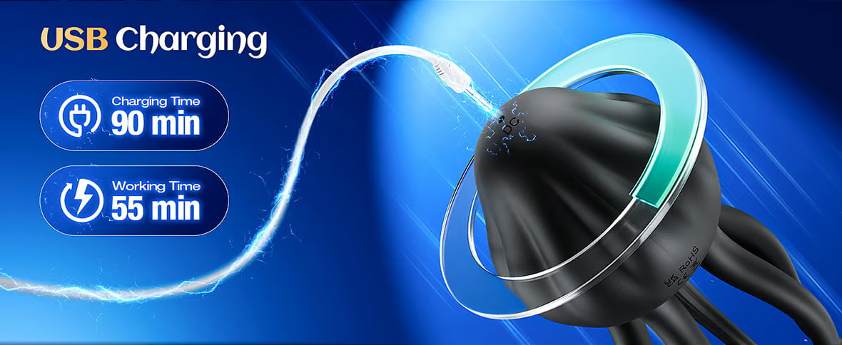 USB Charging and IPX7 Waterproof - Little Jellyfish is always ready whenever you are. With fast USB charging and full IPX7 waterproof protection, you can take your pleasure into the shower, bath, or anywhere the moment sparks.