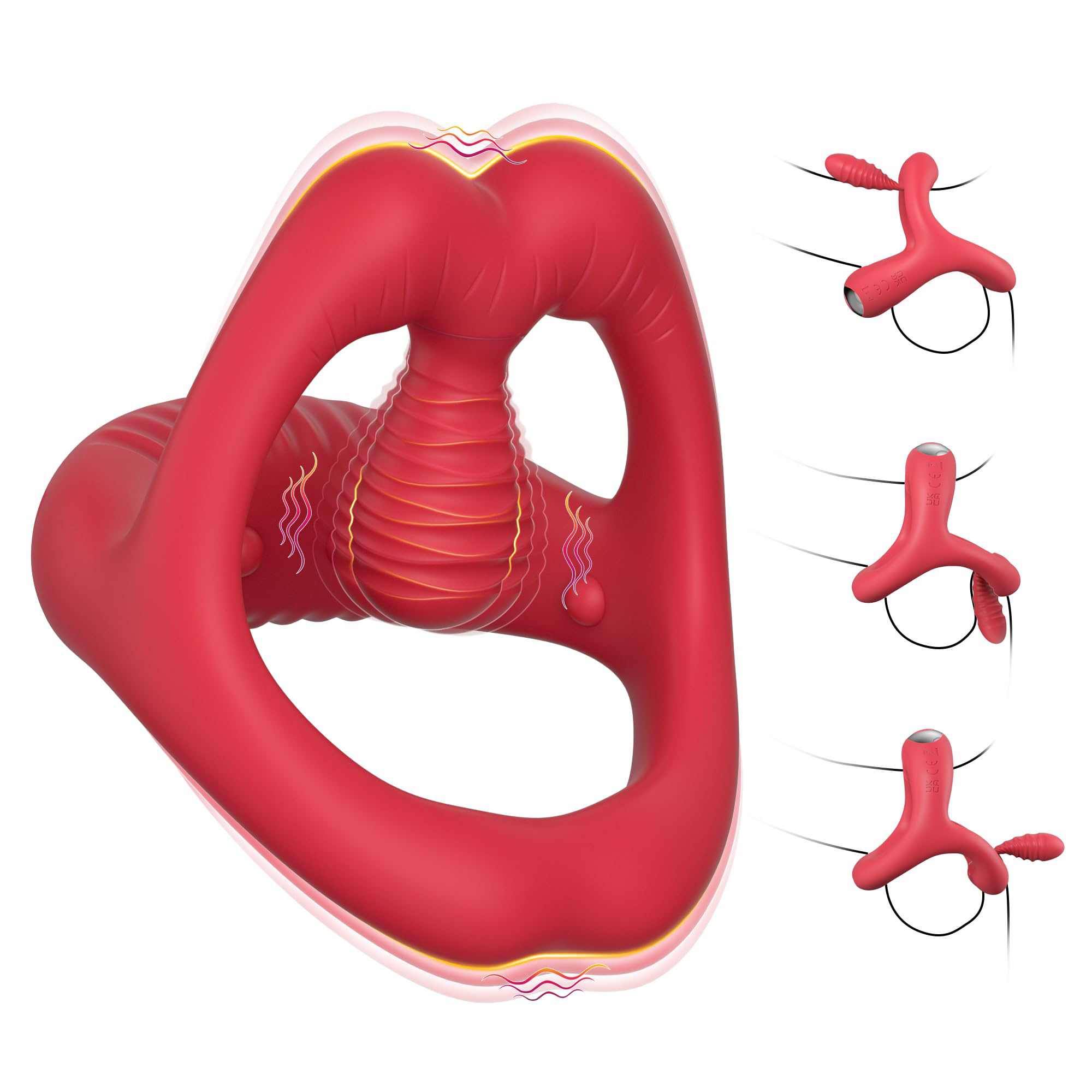 Lip-Shaped Design · Triple-Ring Stamina Boost:The sensual lip-inspired shape and triple-ring structure grip from base to tip, enhancing hardness, stamina, and vibration feedback. Evenly distributed vibrations create a suction-like sensation for a deep, irresistible thrill.